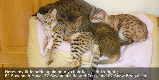 Check out our f1, f2, f3, f4 and f5 generation of savannah kittens.